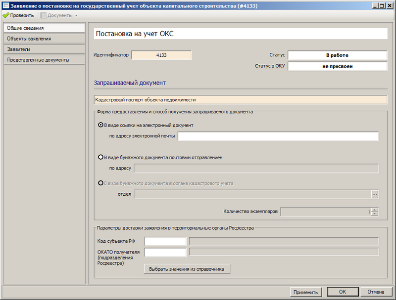 Система позволяет сформировать весь пакет документов для постановки объектов недвижимости на государственный кадастровый учет. Подписать документы ЭЦП и напрямую из программы передать в территориальный орган Росрееста.