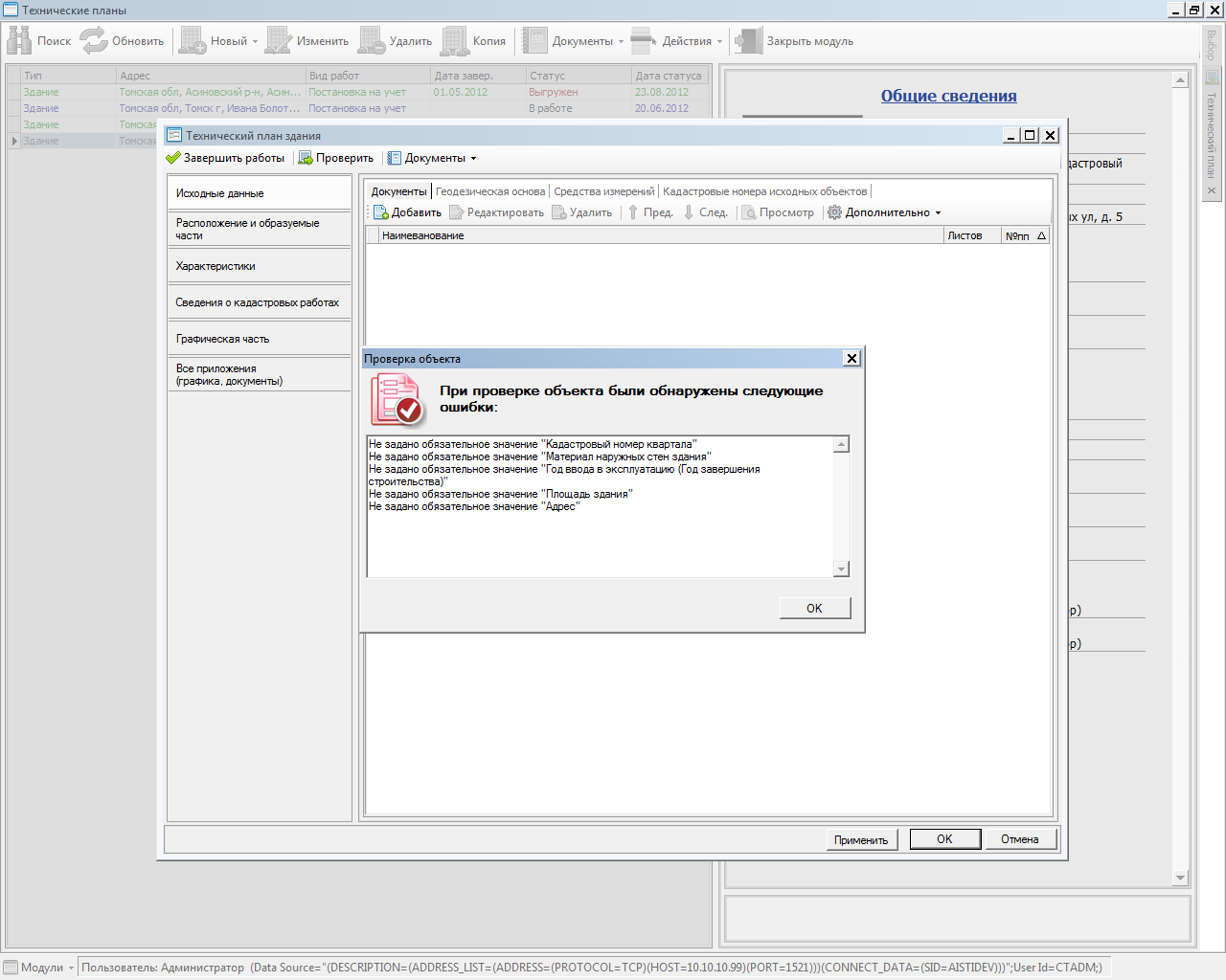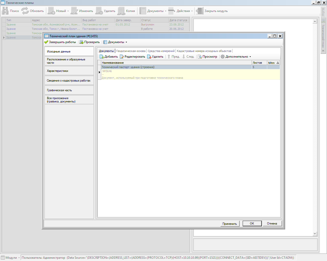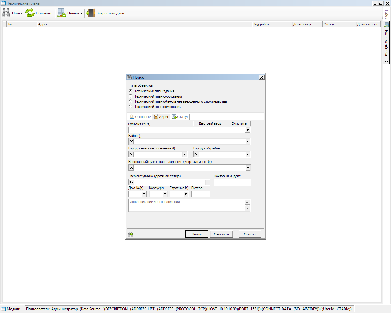 Система позволяет производить импорт пространственного описания объектов капитального строительства из внешних источников.